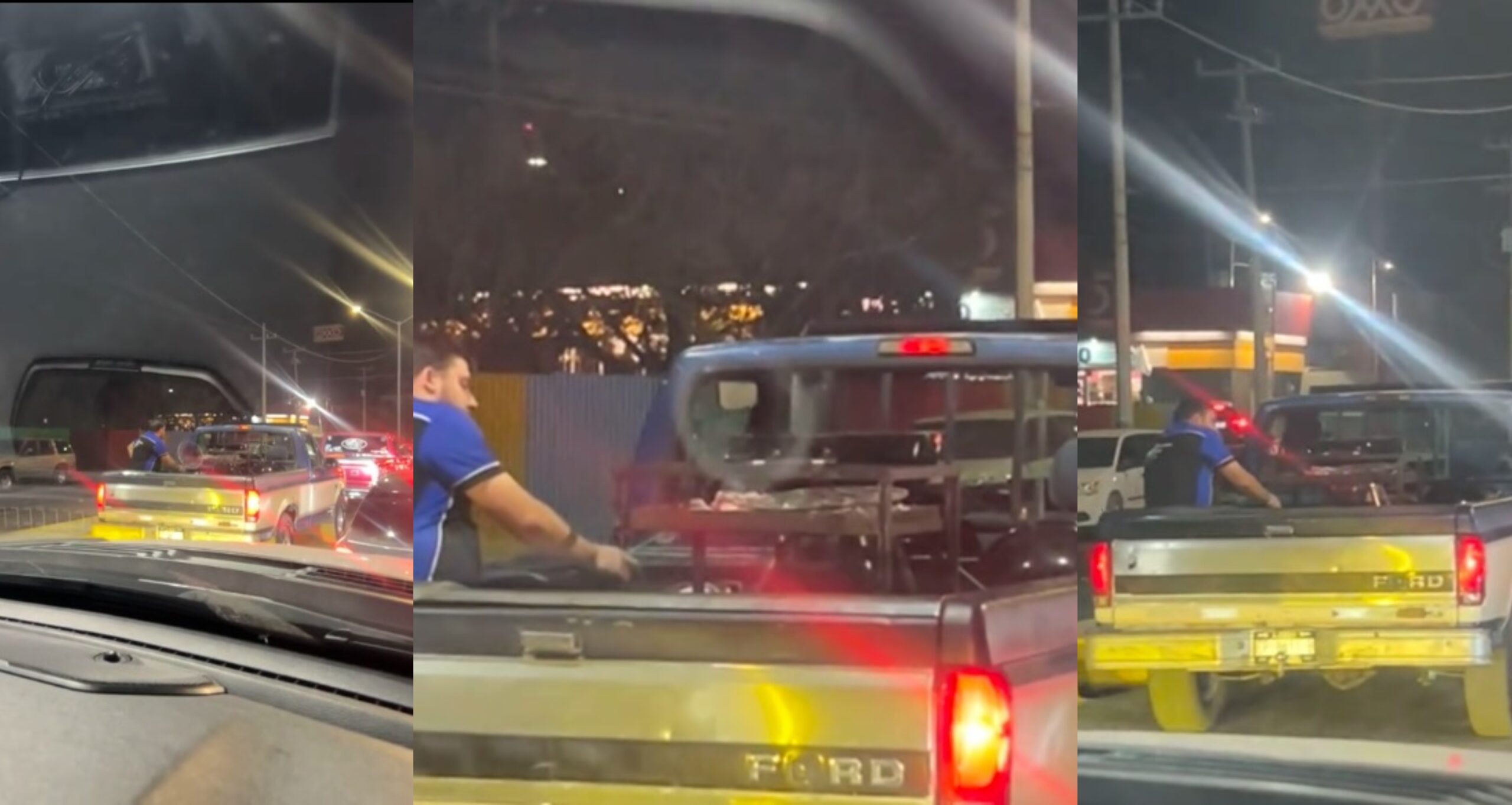 En los últimos días se ha convertido en viral un TikTok de la usuaria @mariia.cadena, en donde muestra que logro captar como un hombre que se encontraba arriba de una camioneta andando, estaba logrando hacer una carne asada con un asador improvisado en la parte trasera de una camioneta.