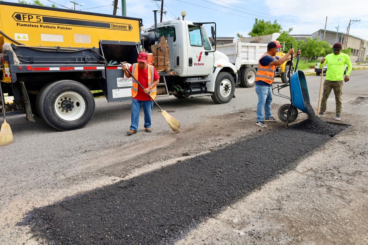 Cd. Victoria, 9 de julio 2025. – En atención a la instrucción del presidente municipal de Victoria Eduardo Gattás Báez de intensificar el Programa de Contingencia de Bacheo, personal del Departamento de Pavimentos rehabilitó calles de la zona centro de la Capital.