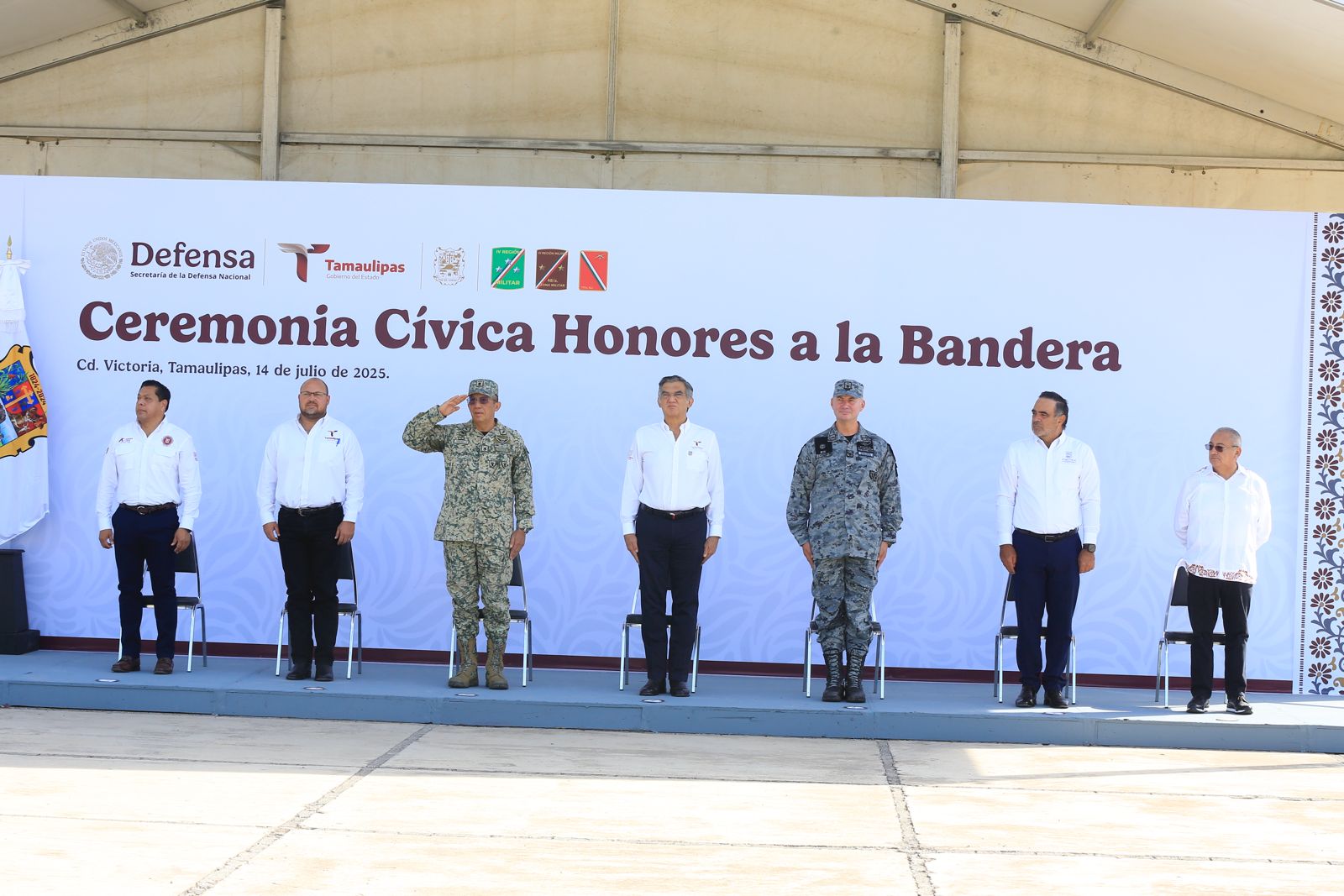 En la ceremonia cívica también estuvieron presentes: Jesús Amparán Hernández, coordinador estatal de la Guardia Nacional en Tamaulipas; Héctor Joel Villegas González, secretario general de Gobierno; Hernán De la Garza Tamez, presidente del Supremo Tribunal de Justicia; Francisco Adrián Cruz Martínez, presidente de la Diputación Permanente del Congreso del Estado, y Alex Melgarejo Torres, subsecretario de Seguridad Pública, además de servidores públicos e integrantes de la Mesa de Seguridad.
