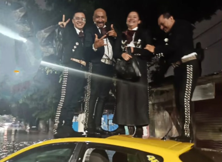 Pese a los estragos provocados por la tormenta, la escena protagonizada por estos mariachis se convirtió en un ejemplo de cómo el ingenio y el buen ánimo pueden hacer más llevaderos los momentos difíciles.