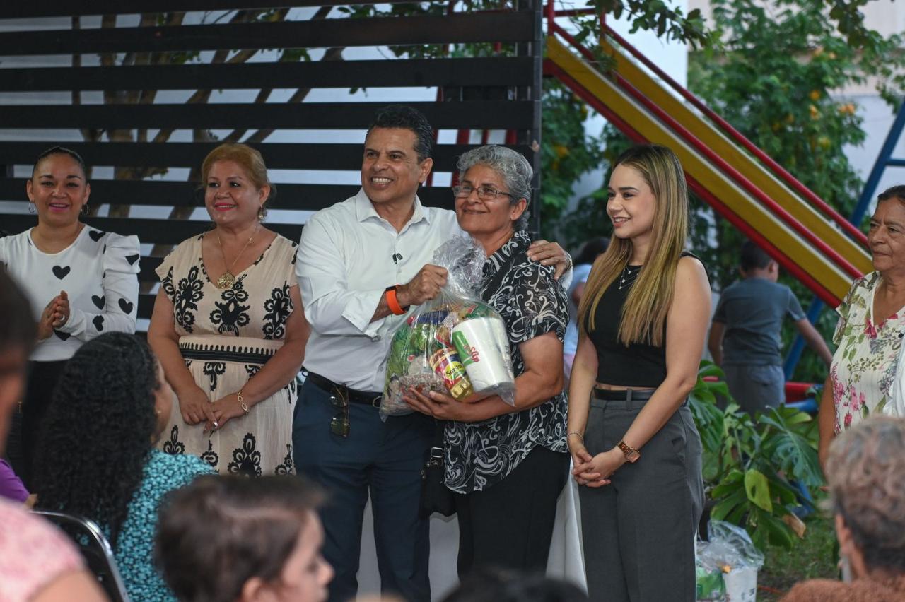 En compañía de su esposa Lucy de Gattás, presidenta del Sistema DIF Municipal, equipo de colaboradores y regidores del Cabildo, se reunió con amas y jefes de familia para entregar apoyos alimentarios, dialogar, escuchar y resolver demandas ciudadanas.