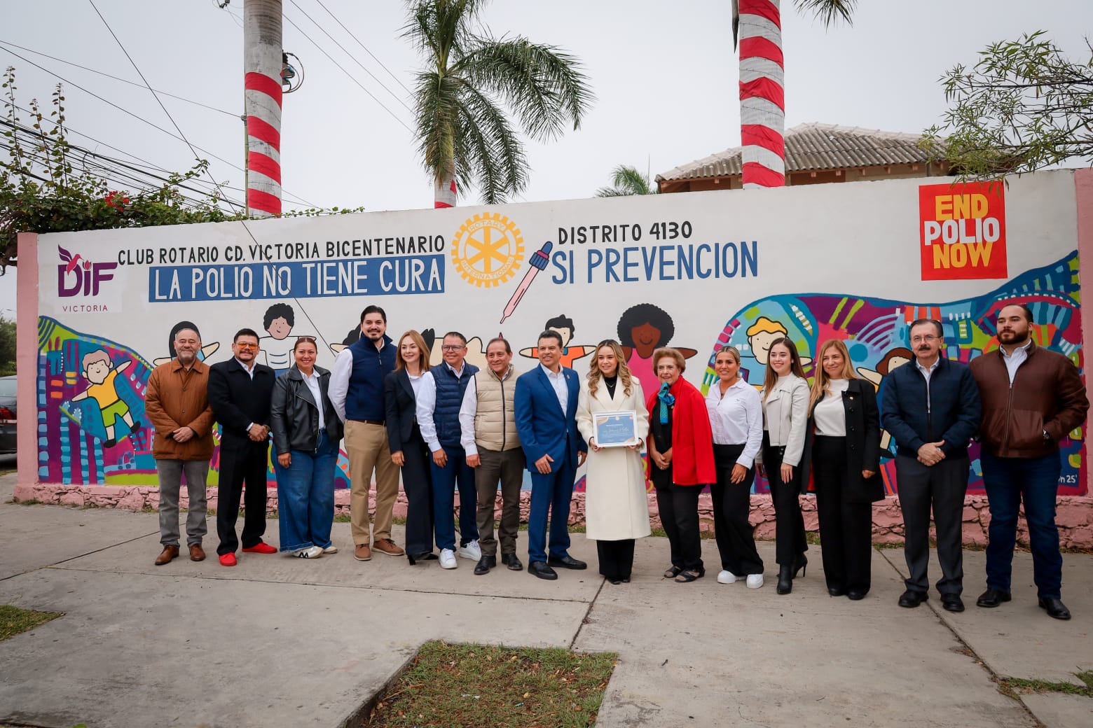 Ciudad Victoria, Tamaulipas 2 de diciembre 2025. – El DIF Victoria, encabezado por su presidenta Lucy de Gattás, presentó en sus instalaciones el mural “End Polio Now”, realizado en colaboración con el Club Rotario Ciudad Victoria Bicentenario como parte de la campaña global de sensibilización sobre la importancia de la prevención y la vacunación contra la poliomielitis.