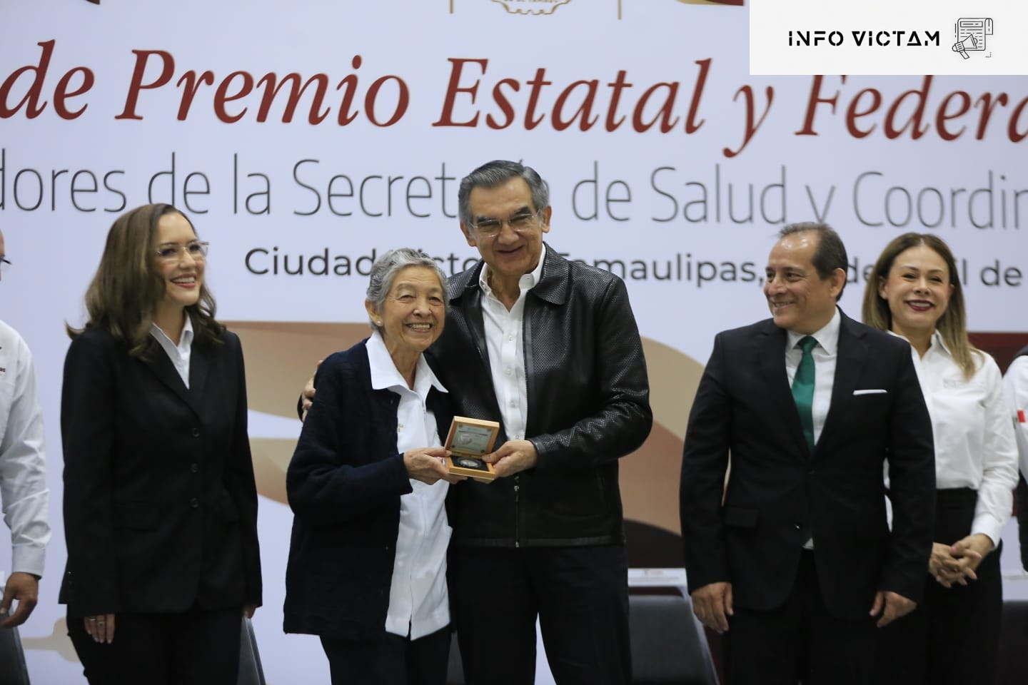 Por 55 años, se reconoció a Oscar Javier Álvarez Meléndez, médico especialista «C» del Hospital Civil de Victoria y a Alma Rosa Escobar Camacho, licenciada en Enfermería de la Oficina Central en Victoria, mientras que por 50 años recibieron su presea: Olga Castillo González, enfermera general titulada “A”; Distrito de Salud para el Bienestar VI en El Mante y Rubén Rodríguez Prado, jefe de sector en Programas de Salud en la Oficina Central de Victoria.