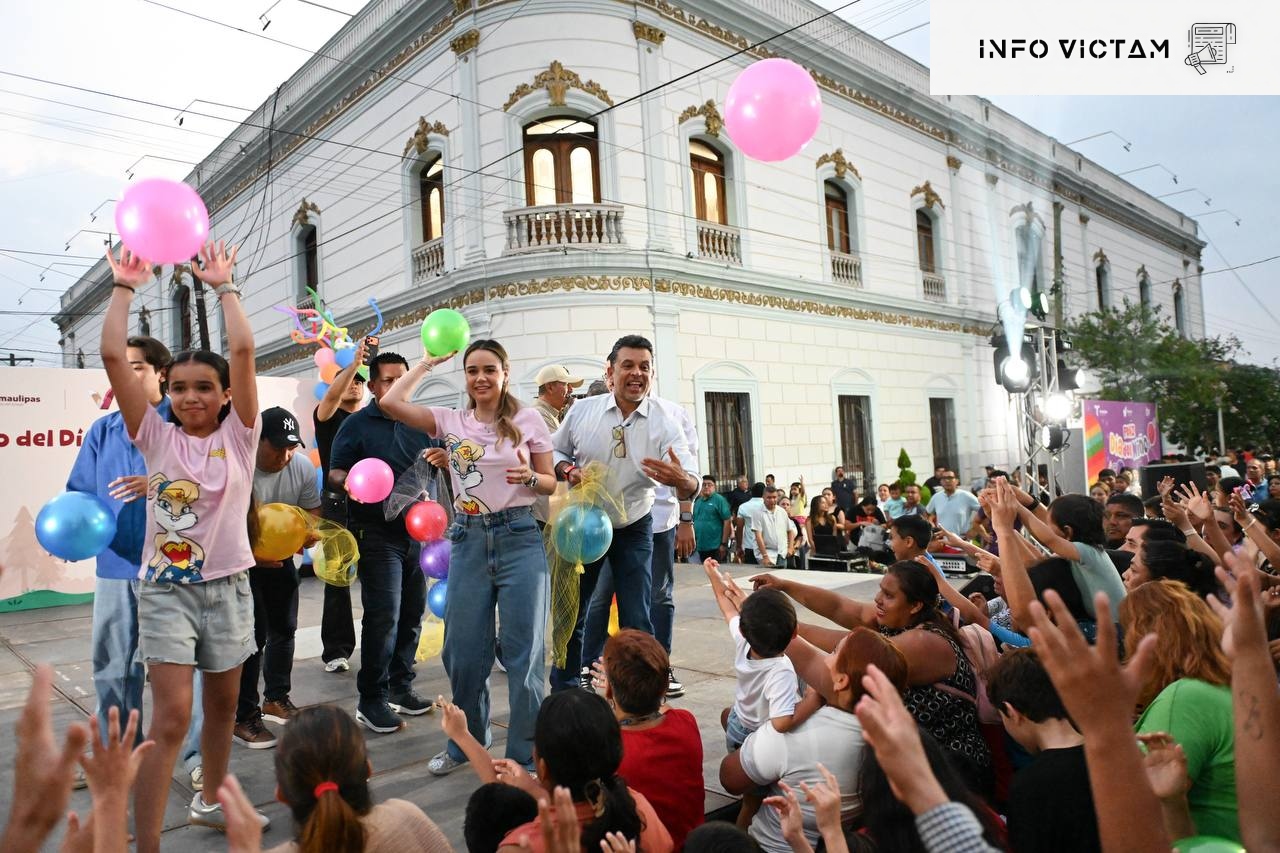 Cd. Victoria, 27 de abril de 2026.- En familia y gran ambiente de alegría y diversión, el alcalde Victoria Eduardo Gattás Báez y la presidenta del DIF Lucy de Gattás festejaron este domingo a la niñez victorense como parte de las actividades del próximo Día del Niño.